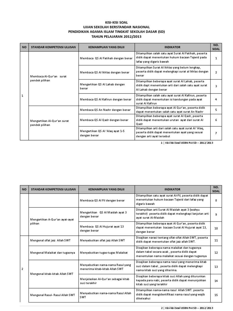Kisi Kisi Soal Pai Sd Kelas 6 Image By Jenice0i3vgr